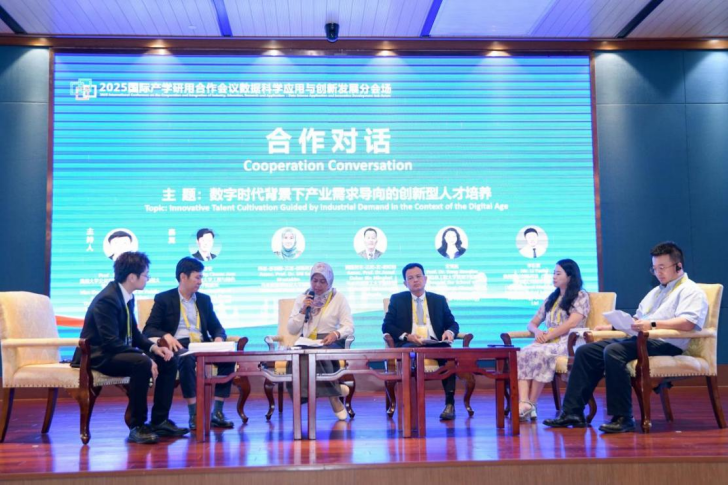 在合作对话环节,围绕“数字时代背景下产业需求导向的创新型人才培养”这一主题,马来西亚拉曼大学工程与绿色科技学院院长黄春安教授、马来西亚博特拉大学西蒂·莎莉娜·宾蒂·穆斯塔基姆教授、马来西亚理工大学阿斯努尔·达哈·宾·明哈特教授、成都信息工程大学管理学院院长宋雪茜教授、贵州大学公共管理学院副院长杨达教授、贵州贵材创新科技(集团)股份有限公司总经理李衍雷先生,共同深入交流智能时代下创新型人才培养、学科建设、跨区域产教融合等方面经验和见解。