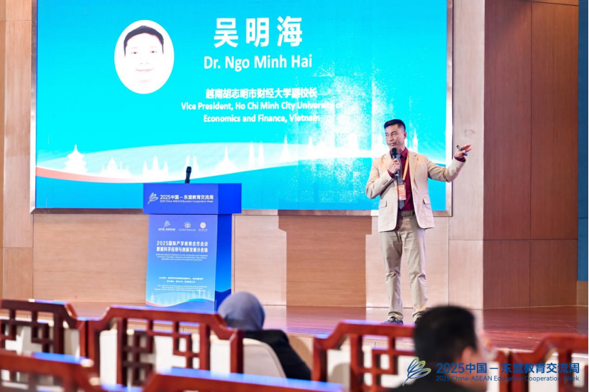 随后,来自越南、马来西亚等国高校的多位专家围绕区域科技生态、跨境合作及人才培养等主题进行主旨发言,分享国际经验,为深化国际产学研用合作提供新思路。如越南胡志明市财经大学副校长Ngo Minh Hai 介绍了越南金融科技生态,马来西亚拉曼大学国际处处长 Lai Soon Onn 阐述了科技创新对东盟发展的推动作用及该校的跨境合作实践,马来西亚玛拉工艺大学马六甲分校副校长 Nur Hayati Binti Abd Rahman 分享了跨境合作培养未来人才的经验。