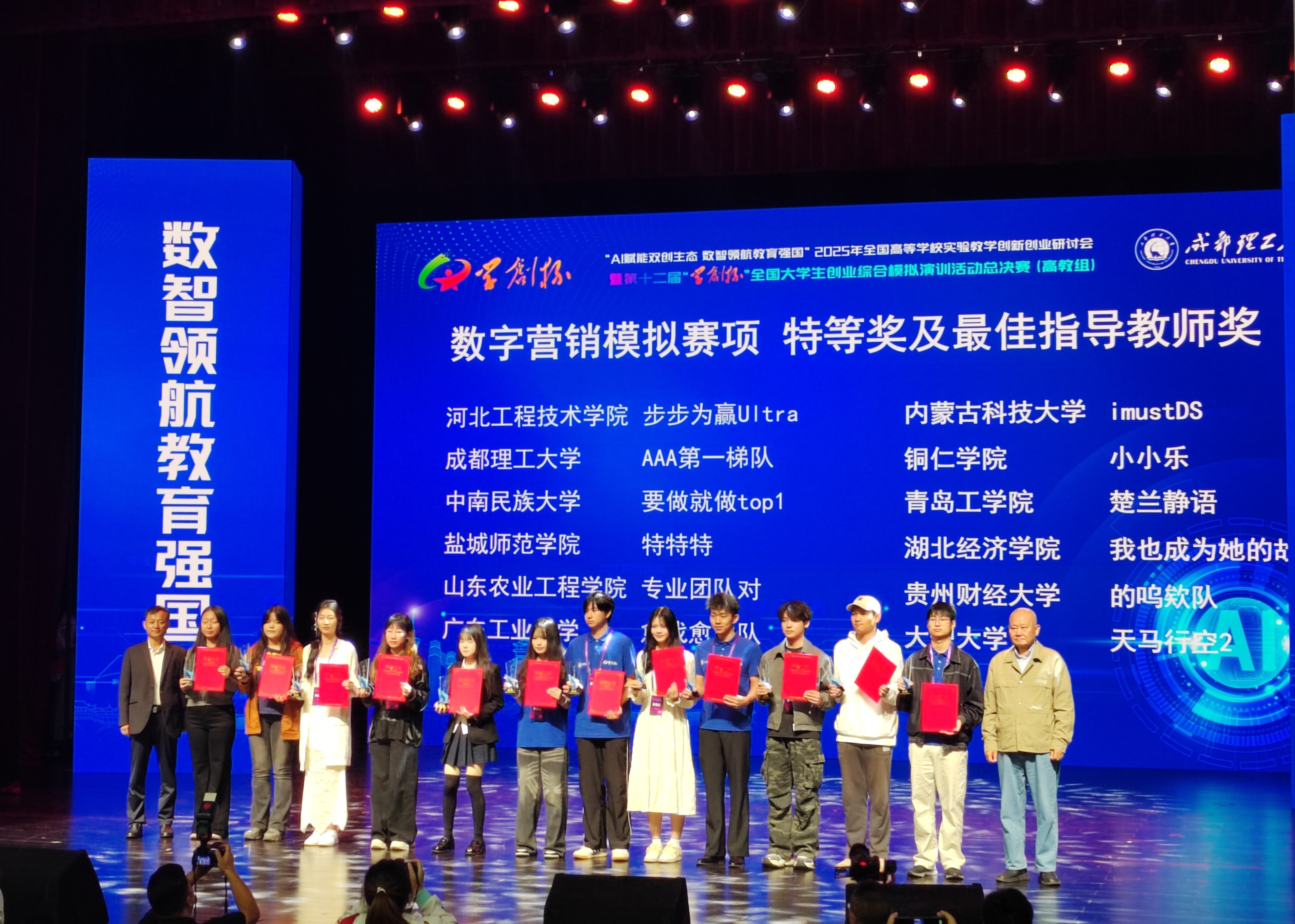 本网讯:(经济学院 经济学院 报道)10月20日,第十二届“学创杯”全国大学生创业综合模拟演训活动全国总决赛(高教组)顺利落下帷幕。经过激烈角逐,我校24级经济学本科生赵清、卢明桃、傅子琦以及24级硕士研究生罗云、刘庆云、和嘉慧组成的我校代表队获得特等奖和一等奖。