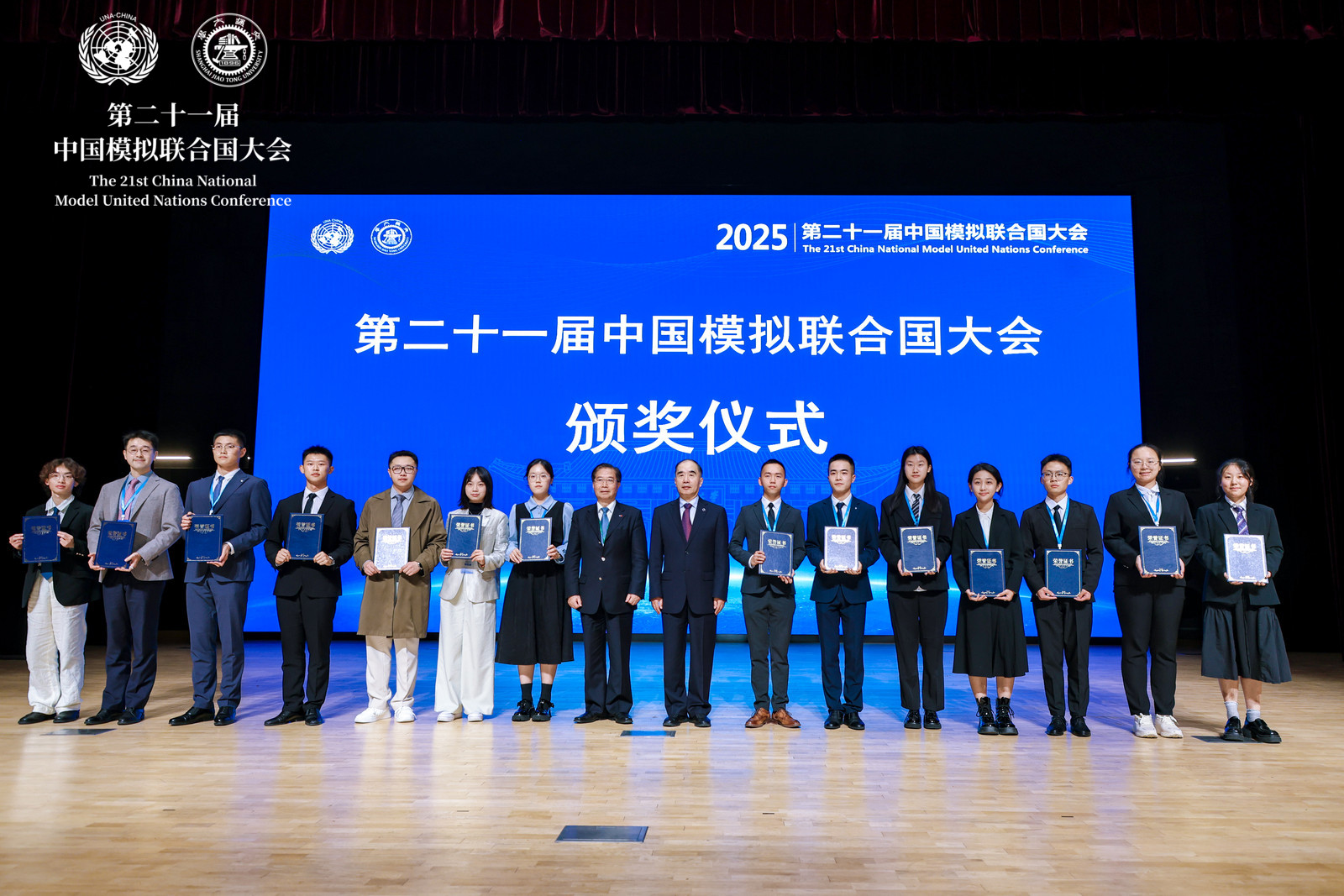 本网讯:(国际交流合作处 杨西航 图文报道)10月17日至19日,第二十一届中国模拟联合国大会在上海圆满落幕。本次大会由中国联合国协会主办、外交部国际司支持、上海交通大学承办。我校何德爽、陈梅、耿丽、周雨璇四位学子从全国100多所高校的400余名参会代表中脱颖而出,展现了贵财学子的卓越风采。其中,法学院2023级本科生何德爽在“联合国网络犯罪特设委员会”中的表现获评委高度认可,斩获“最佳潜力奖”,实现了我校在该赛事中零的突破。